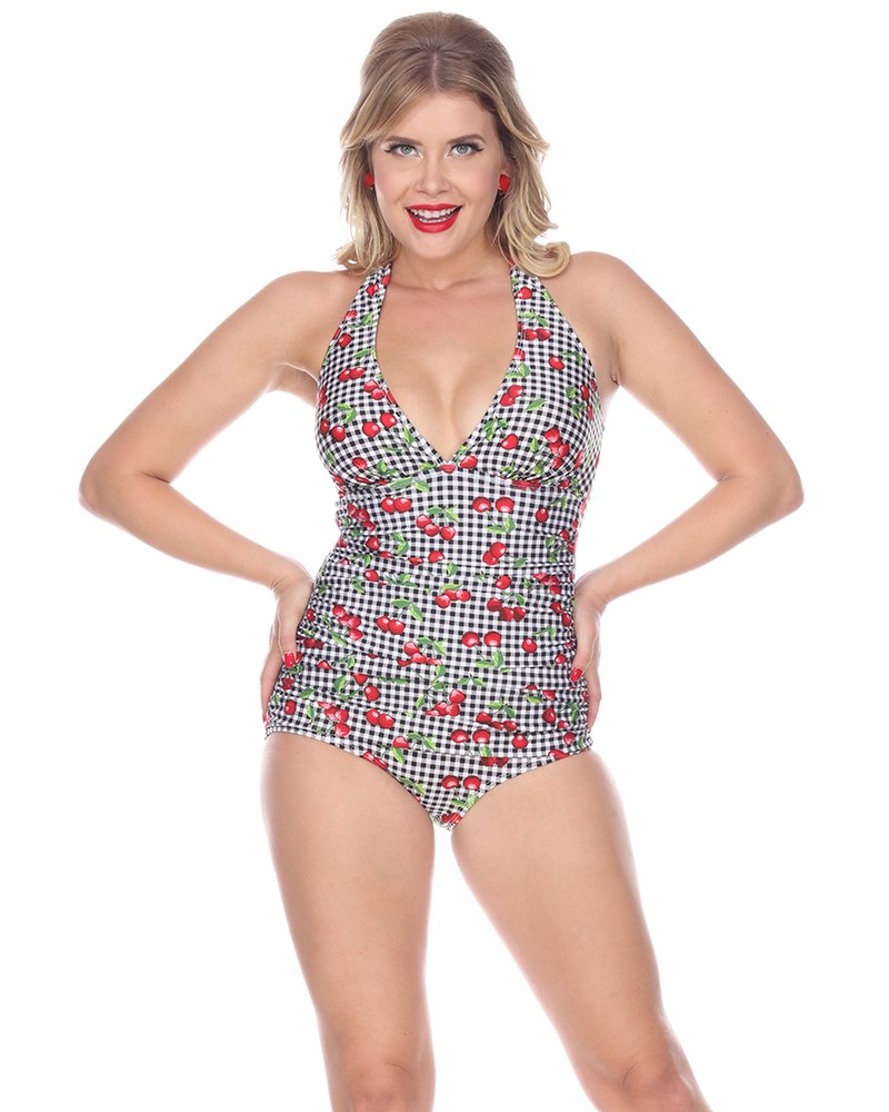 Be the first to review “Italy Direct Gingham Cherry Ruched Halter Swimwear” Cancel reply