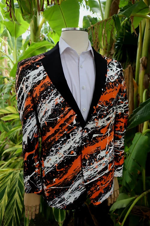 Each of these sport jackets is hand painted by a local New Orleans artist, making each of them a unique piece of wearable art. Perfect for making a statement at any event. Painted with a mix of acrylic and latex, these jackets are dry clean only.