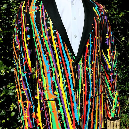 Each of these sport jackets is hand painted by a local New Orleans artist, making each of them a unique piece of wearable art. Perfect for making a statement at any event. Painted with a mix of acrylic and latex, these jackets are dry clean only.
