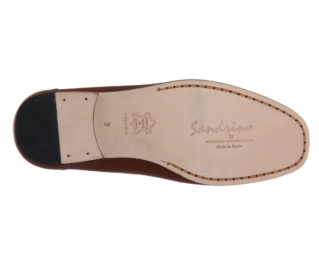 A slim sole grounds a sleek penny loafer formed from vegetable-tanned leather.
