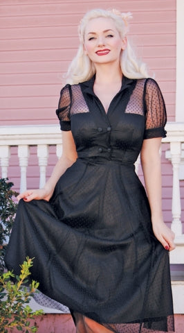 Swing Dress with Straight Neckline Lace Top with Cap Short Sleeves.