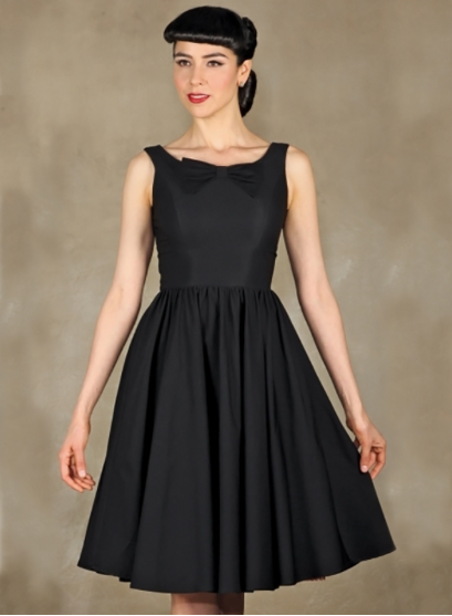 Fitted Dress with Scoop Neckline, Bow at Neckline, and Tank Sleeves.