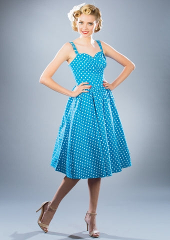 Swing Dress with Pleated Sweetheart Neckline and Tripled Spaghetti Straps.
