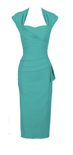 Fitted Dress with Sweetheart Neckline, Rouching Across the Torso, Keyhole Back, and Tassel on the Hip.